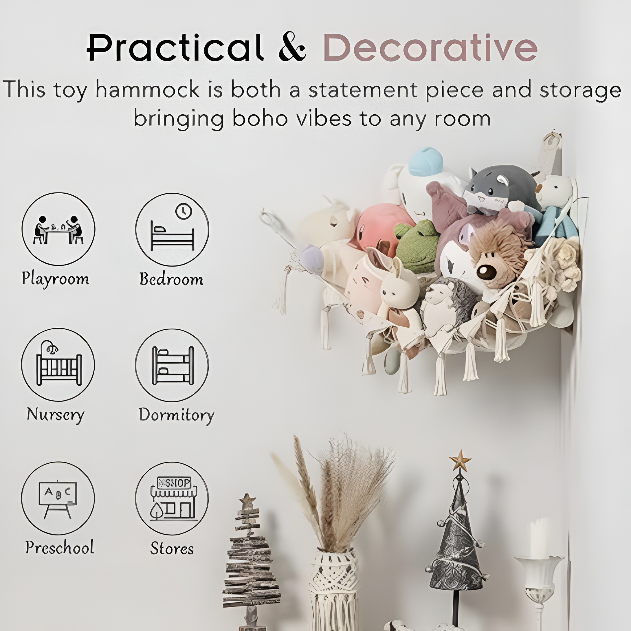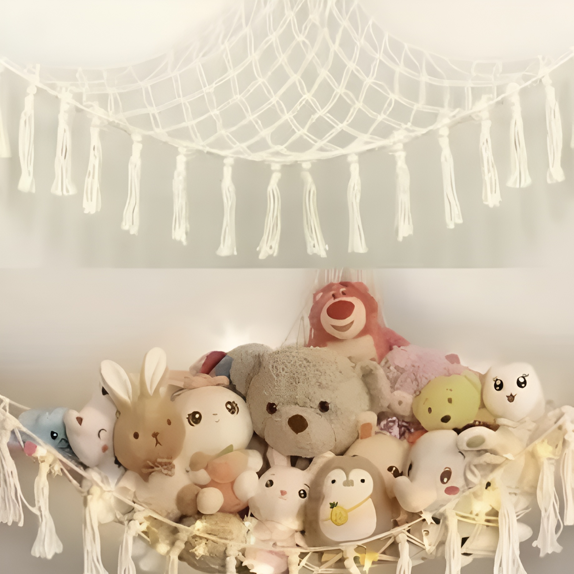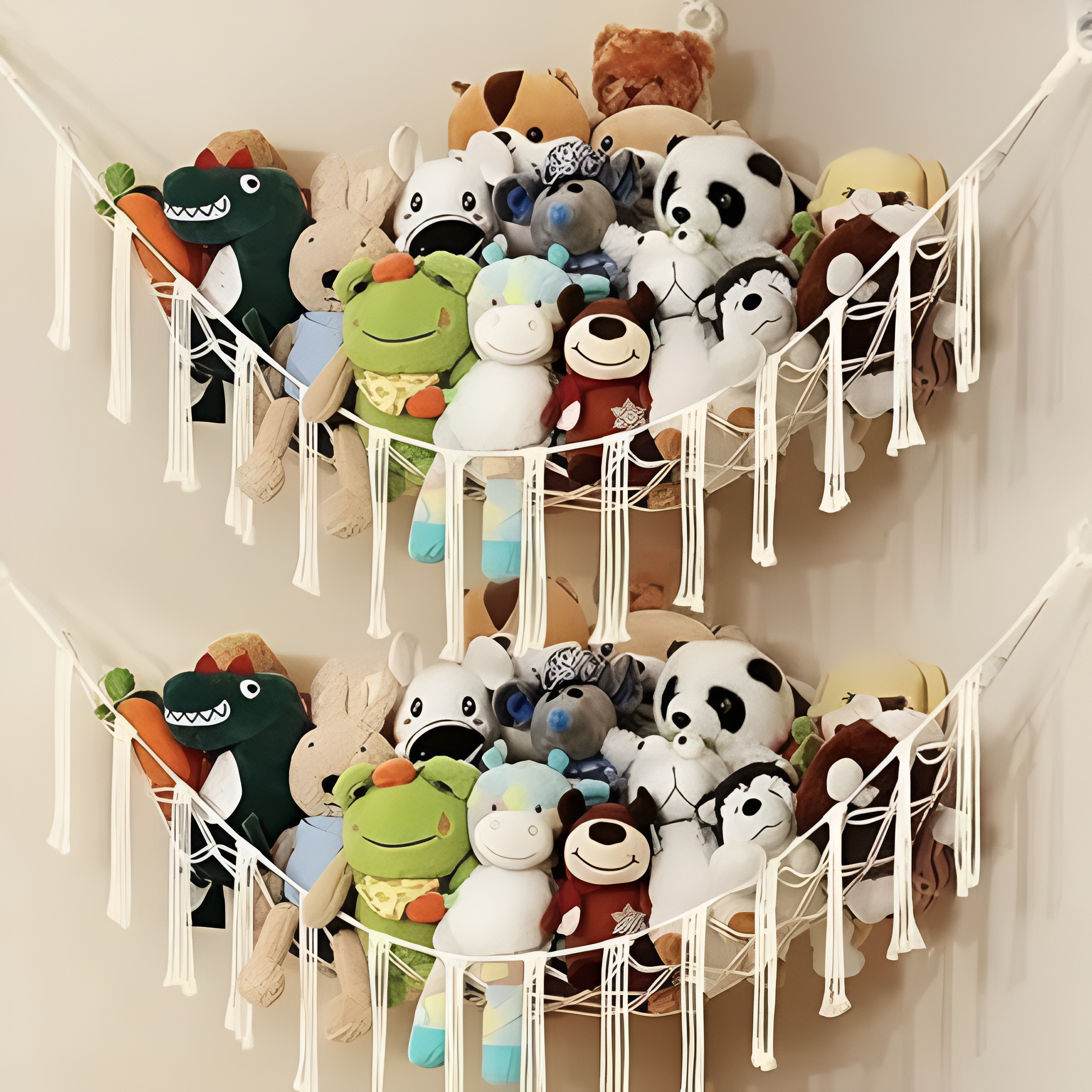 This toy hammock is designed to be placed in the corner of your wall, helping you save space while keeping your room neat. Instead of leaving toys scattered around, you can store them in one place in a stylish way.