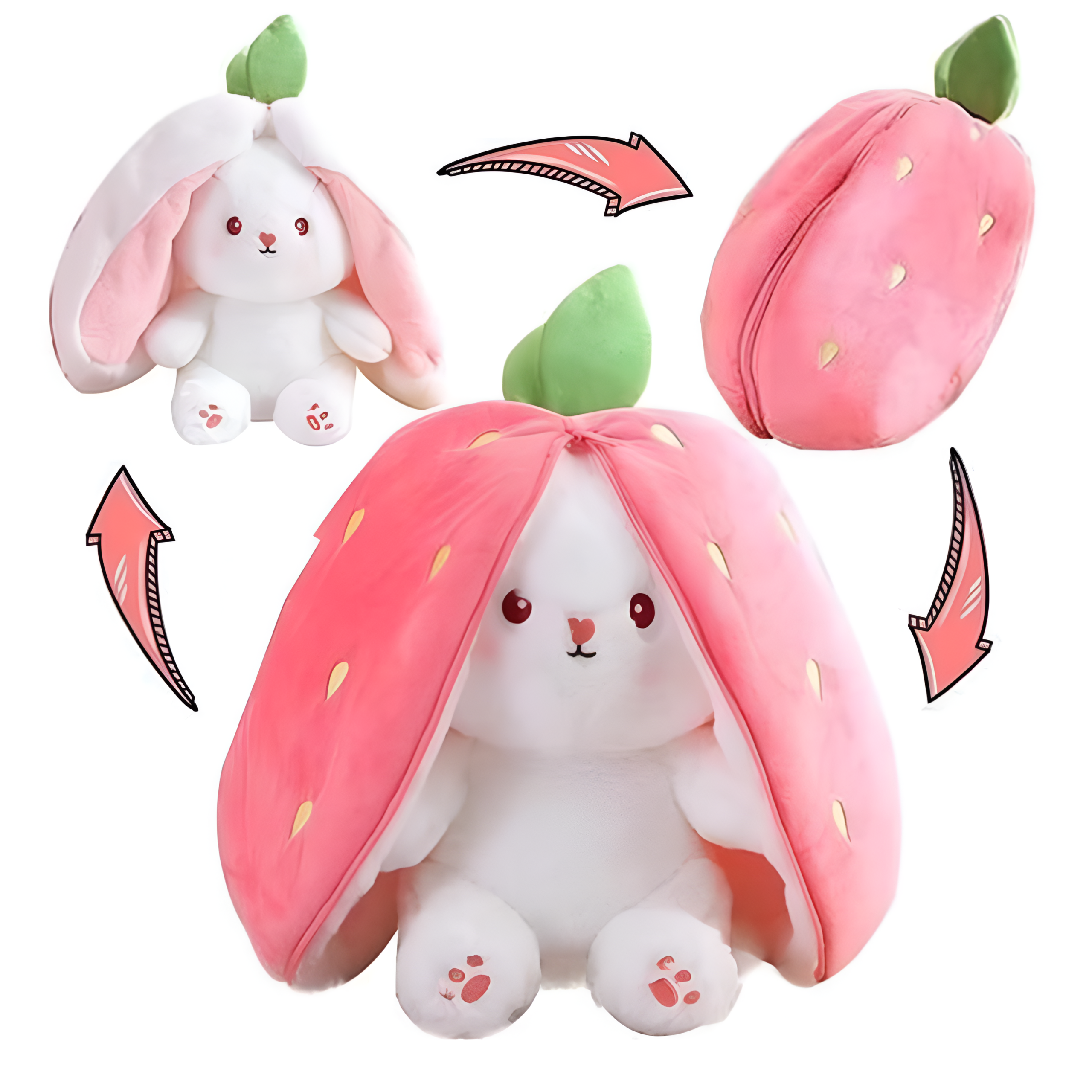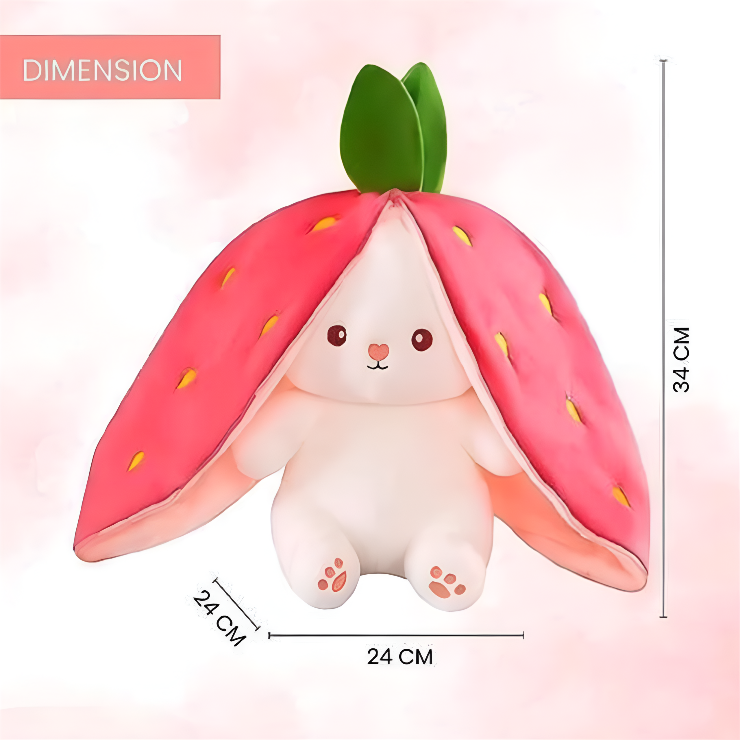 If you want a cute soft toy to hug, a charming room decoration, or a sweet gift, this Strawberry Rabbit Plushie is a great choice
